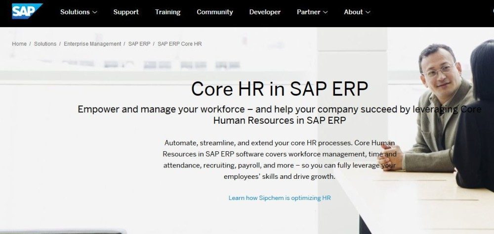 Core Human Resources in SAP ERP software covers workforce management, time and attendance, recruiting, payroll, and more to fully leverage your employees’ skills and drive growth.