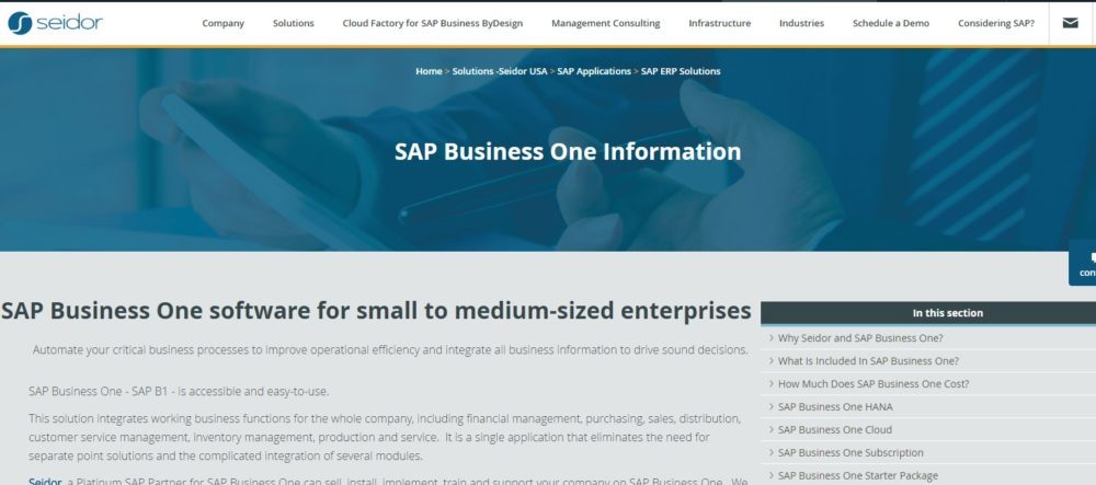 Their sales staff, implementation consultants, technical consultants and support staff are certified by SAP to sell, install, implement, train and support on the SAP Business One solution. Whether you are looking at SAP Business One for the first time, are looking to recover or re-implement SAP Business One, or are considering other SAP products to fill technology requirements at your company - Seidor can help.