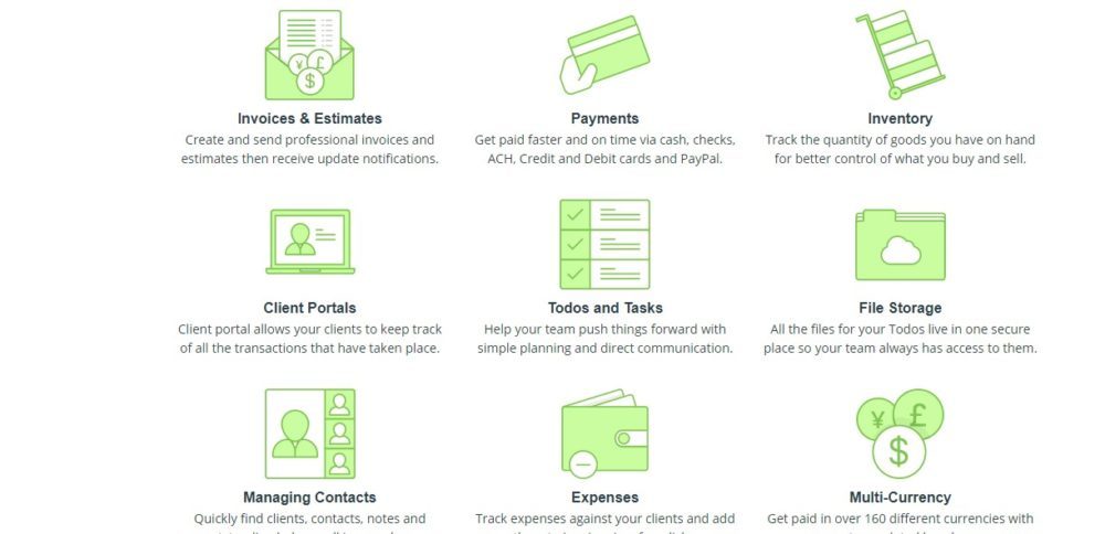 The invoices and estimates feature enable creating and sending professional invoices and estimates then receiving update notifications. The payments feature offers an excellent platform to get paid faster and on time via cash, checks, credit and debit cards, and PayPal. The inventory feature allows tracking the number of goods held at hand for better control of what will be bought and sold.