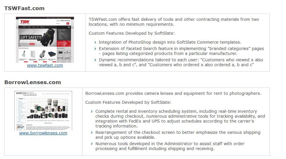 SoftSlate Commerce is designed to be easily extended and customized. It offers full custom development options and support services.