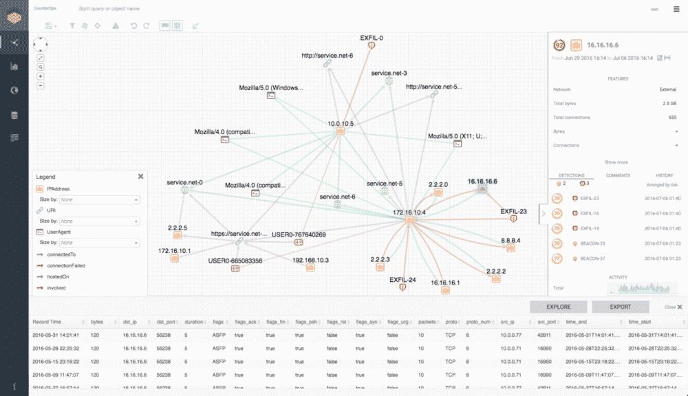 Sqrrl Enterprise uses link analysis, UEBA or User and Entity Behavior Analytics as well as multi petabyte scalability capabilities into an incorporated solution. It facilitates proactive threat detection by analyzing different datasets available at a given time.