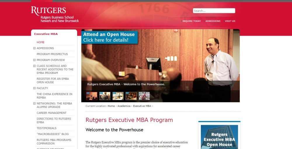 The State University of New Jersey, Rutgers Business School-Newark and New Brunswick, Executive MBA