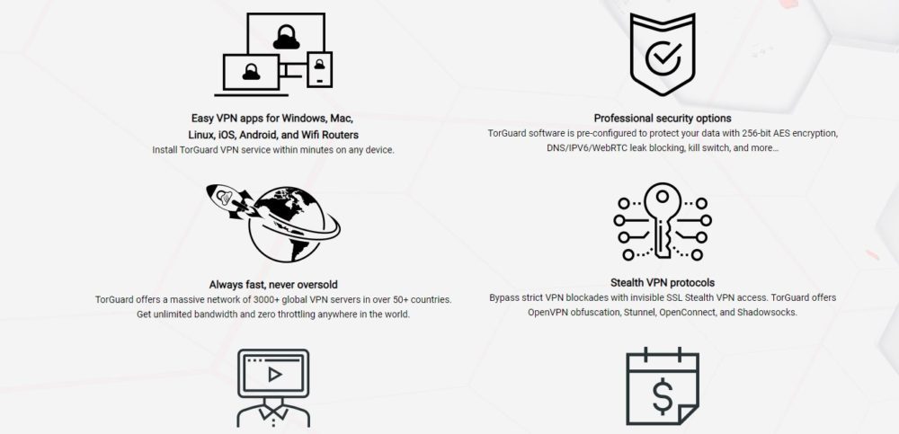 Each support representative is trained to understand and troubleshoot common VPN questions with minimal wait times and easy solutions. TorGuard has the most advanced encryption and protocols in the world. It uses AES-256 encryption with SHA-512--alongside unique uncrackable protocols like Stunnel, OpenVPN, SSTP and SSH tunnels. TorGuard’s encryption and security protocols push VPN security into the future. With affordable packages, reliable speed and strict security combined with admirable tech support TorGuard will definitely give its clients their money’s worth.