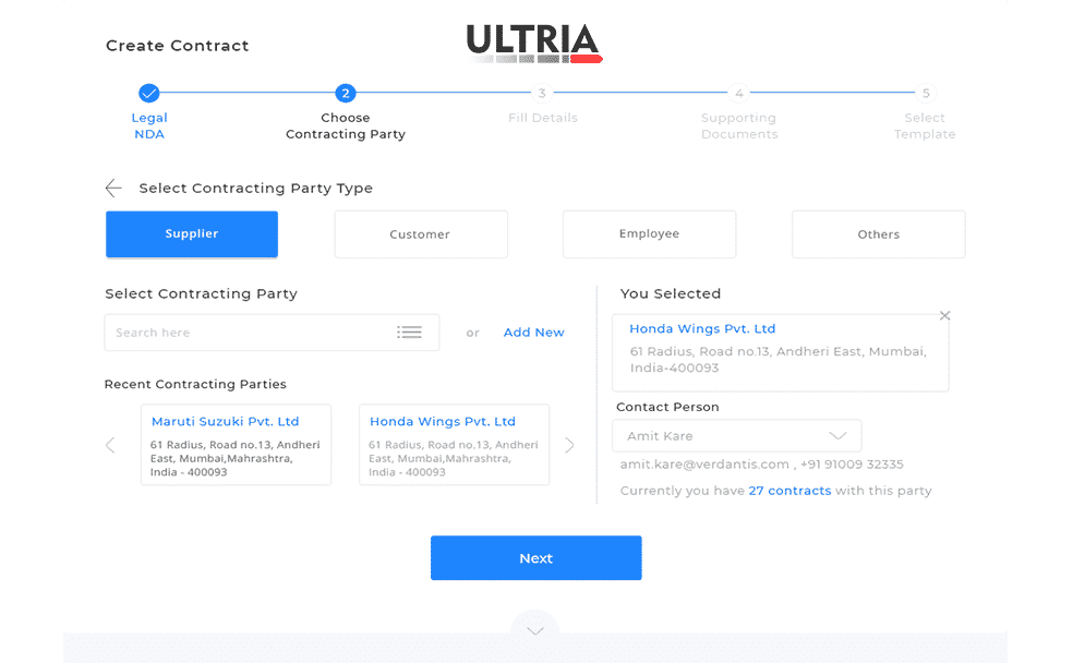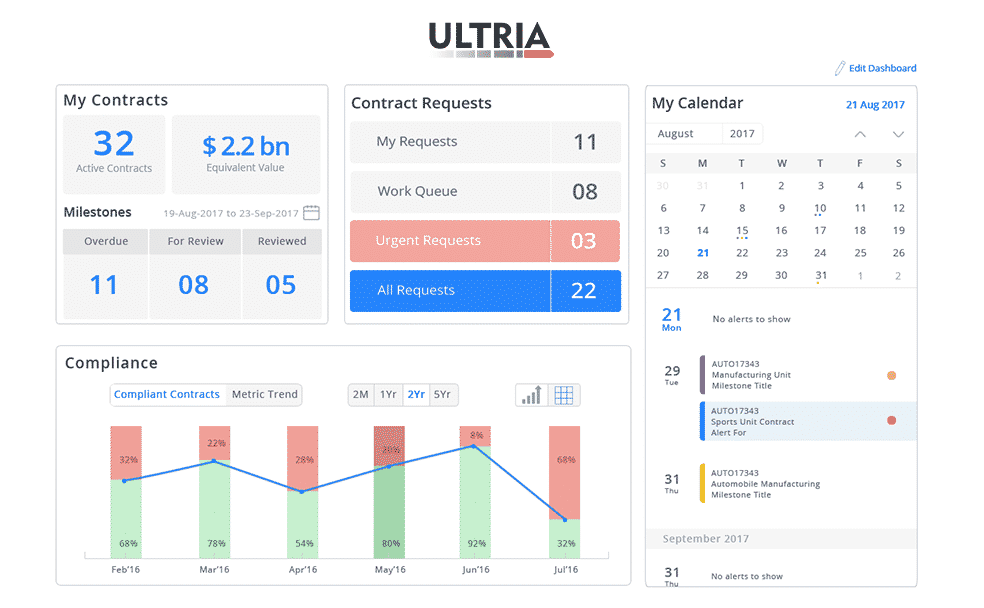 Ultria has divided its offerings into three key product modules – Contract Authoring, Contract Repository and Post-Award Contract Compliance Management.