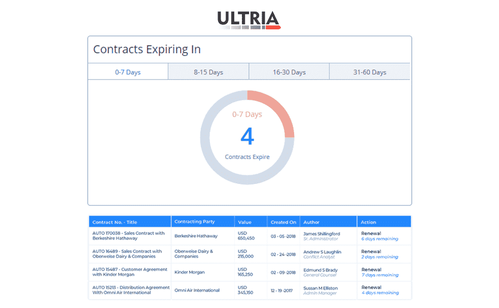 Ultria’s contract management product comes with a legacy of successful deployments over more than seven years. Ultria focuses on helping organizations boost their contract management processes and deliver value to their legal and revenue teams.