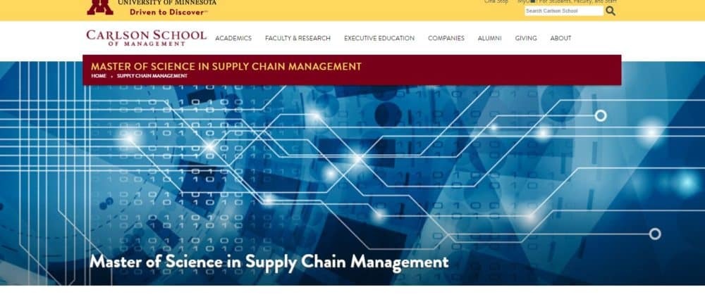 Master of Science in supply chain management at the University of Minnesota is a one year, cohort-based program that drives analytical thinkers and professionals to expedite the transition into supply chain career. The rigorous curriculum has been put in place to impart the depth and breadth of supply chain knowledge required to allow meaningful contribution towards successful supply chain. Prospects learn their role in operations management to enhance the flow of raw materials, finished goods, information and services to maximize value for consumers. The students are well-equipped with skills, knowledge and insights proficient persons need to lead and transform supply chains that drive success and deliver value. The school is strategically located around 17 Fortune 500 companies. The theory learnt in class is supplemented with practicum projects. The companies expose the students to real-life problems in supply chain management as they are welcomed to discover problems, explore solutions and implement them to a specific problem given. Hands-on experience is further enhanced by workshops designed to give students the techniques and skills so valuable in today’s hyper-competitive global supply chain. Experimental learning hence ensures well-equipped proficient graduates. Master of Science in supply chain management is inclusive of 32 credits done in three semesters. Learning is made easier through integrated methods where traditional class learning is complemented with online classes too. The program is flexible offering evening and weekend classes to enable students to venture into their own preference. The proficient faculty gives birth to prolific graduates who are able to provide the strategic and analytical capabilities needed to manage supply chains from end to end.