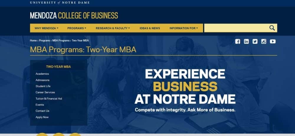 University Of Notre Dame, Mendoza College Of Business, Two-Year Full-Time MBA
