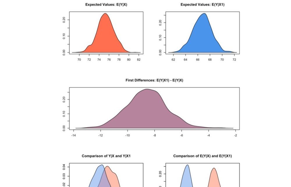 • Uncertainty estimates (generalizing Clarify for Stata); automates graphics and numerical summaries for all models;