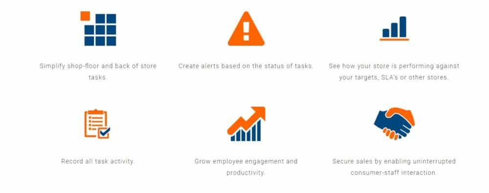• Ease of use: Simplify shop-floor and back of store tasks • Safe: Secure sales by enabling uninterrupted consumer-staff interaction • Profitability: Grow employee engagement and productivity • Save time: IT resources are freed up from time-consuming, complicated installation procedures and management of servers or software
